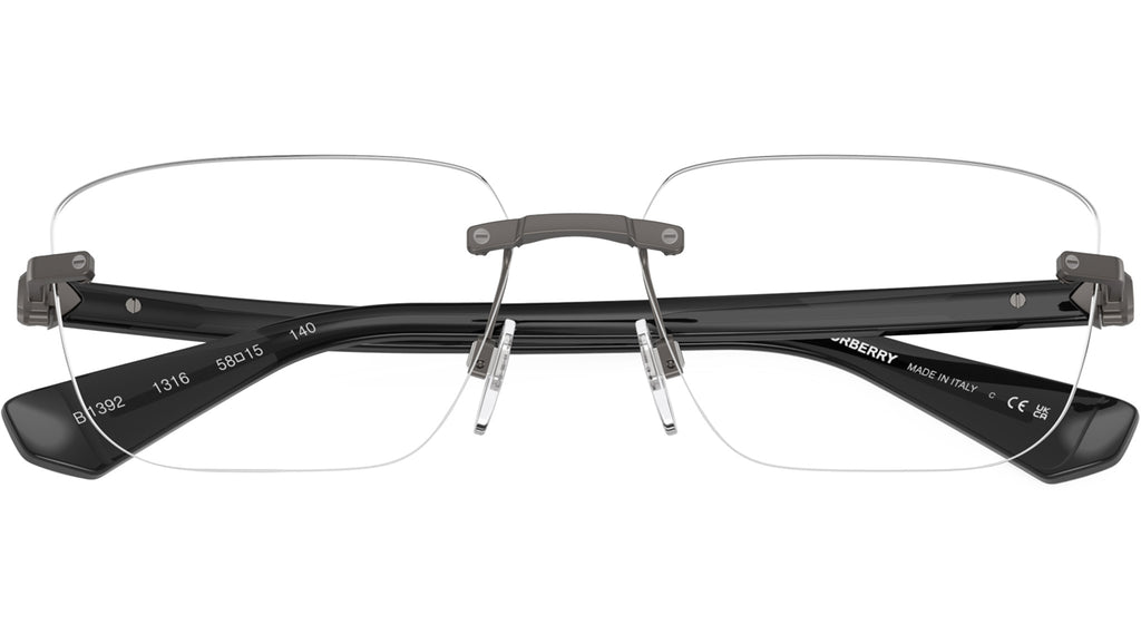 Occhiali da vista Burberry uomo modello BE1392 1316 con montatura full rim in metallo grigio opaco e lenti demo. Naselli regolabili. Fitting consigliato: L. Linea: Metal Shield. Codice modello: 0BE1392. Codice colore: 1316. Rivenditore autorizzato online Burberry. Gli occhiali includono la custodia e gli accessori originali e sono coperti da una garanzia globale di 12 mesi.