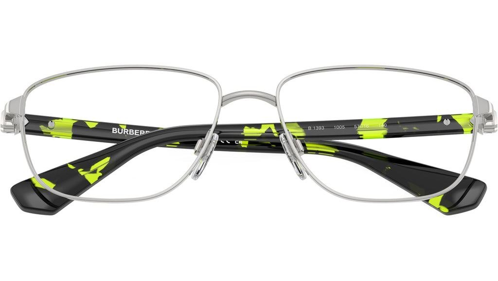 Occhiali da vista Burberry uomo modello BE1393 1005 con montatura full rim in metallo argento e lenti demo. Naselli regolabili. Fitting consigliato: XL. Linea: Metal Shield. Codice modello: 0BE1393. Codice colore: 1005. Rivenditore autorizzato online Burberry. Gli occhiali includono la custodia e gli accessori originali e sono coperti da una garanzia globale di 12 mesi.