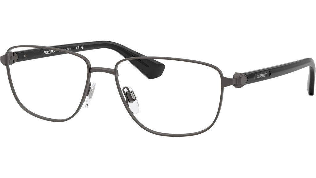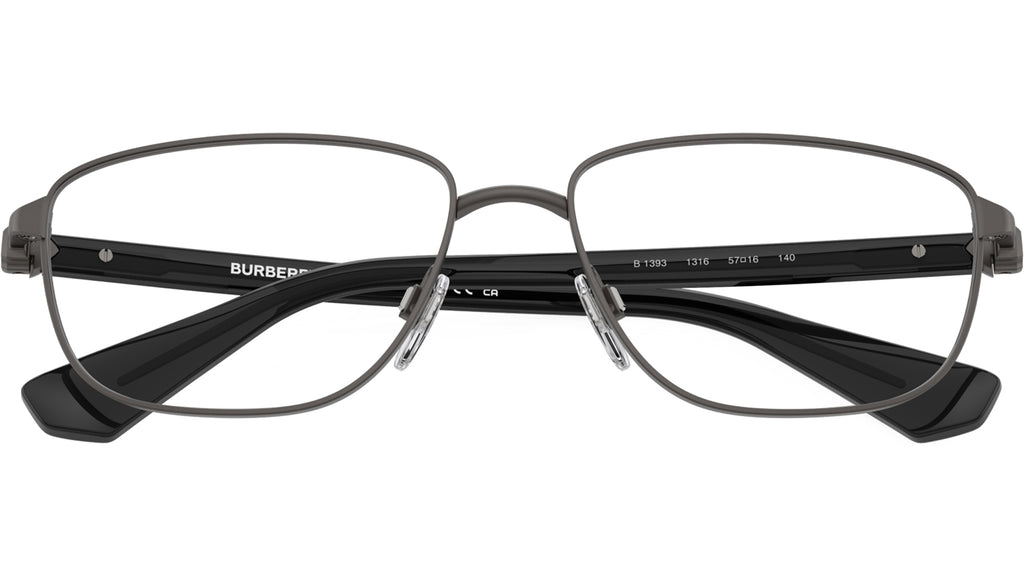 Occhiali da vista Burberry uomo modello BE1393 1316 con montatura full rim in metallo grigio opaco e lenti demo. Naselli regolabili. Fitting consigliato: XL. Linea: Metal Shield. Codice modello: 0BE1393. Codice colore: 1316. Rivenditore autorizzato online Burberry. Gli occhiali includono la custodia e gli accessori originali e sono coperti da una garanzia globale di 12 mesi.