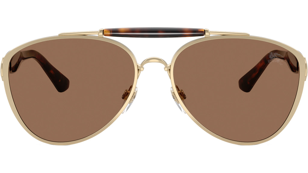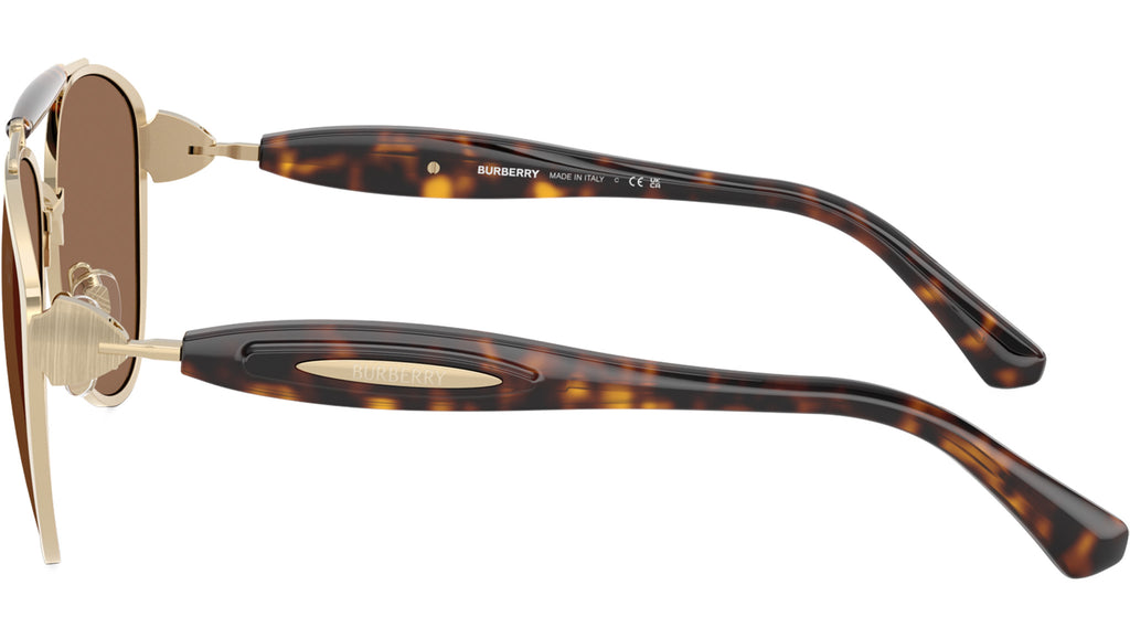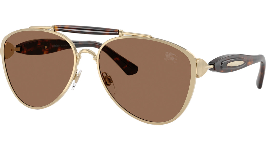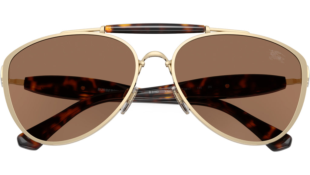 Occhiali da sole Burberry unisex modello BE3160 110973 con montatura full rim in metallo oro chiaro e lenti in bio poliammide marrone scuro. Naselli regolabili. Fitting consigliato: XXL. Linea: Lookbook Autumn 24 Limited Dis. Codice modello: 0BE3160. Codice colore: 110973. Rivenditore autorizzato online Burberry. Gli occhiali includono la custodia e gli accessori originali e sono coperti da una garanzia globale di 12 mesi.