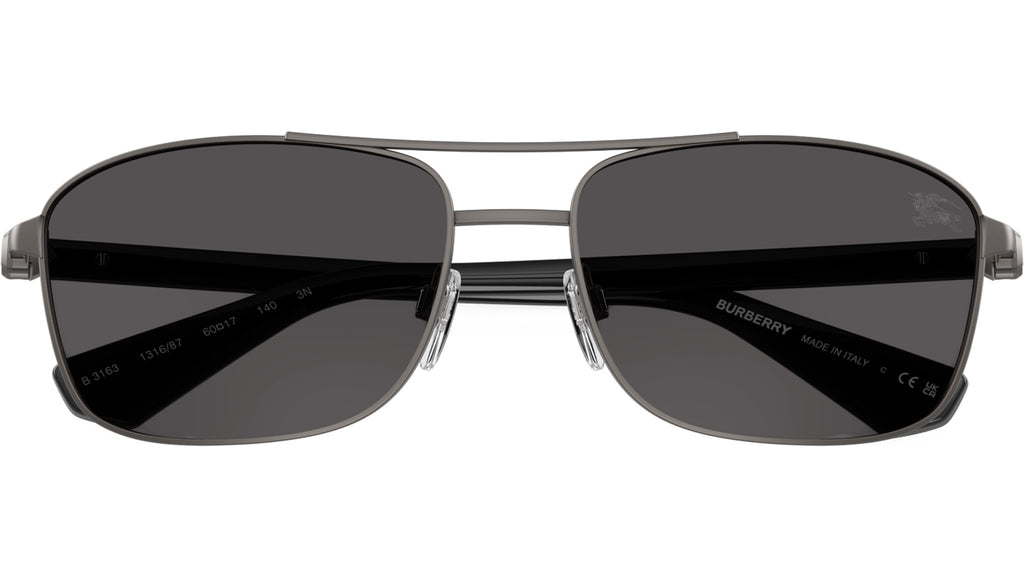 Occhiali da sole Burberry uomo modello BE3163 131687 con montatura full rim in metallo grigio opaco e lenti in bio poliammide grigio scuro. Naselli regolabili. Fitting consigliato: XXL. Linea: Metal Shield. Codice modello: 0BE3163. Codice colore: 131687. Rivenditore autorizzato online Burberry. Gli occhiali includono la custodia e gli accessori originali e sono coperti da una garanzia globale di 12 mesi.