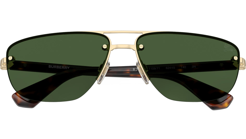 Occhiali da sole Burberry uomo modello BE3164 110971 con montatura full rim in metallo oro chiaro e lenti in bio poliammide verde scuro. Naselli regolabili. Fitting consigliato: XXL. Linea: Metal Shield. Codice modello: 0BE3164. Codice colore: 110971. Rivenditore autorizzato online Burberry. Gli occhiali includono la custodia e gli accessori originali e sono coperti da una garanzia globale di 12 mesi.