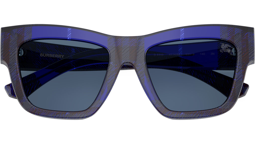 Occhiali da sole Burberry donna modello BE4449 411480 con montatura full rim in acetato check blue e lenti in bio poliammide blu scuro. Vestibilità a ponte alto. Fitting consigliato: M. Linea: Shield Facet. Codice modello: 0BE4449. Codice colore: 411480. Rivenditore autorizzato online Burberry. Gli occhiali includono la custodia e gli accessori originali e sono coperti da una garanzia globale di 12 mesi.