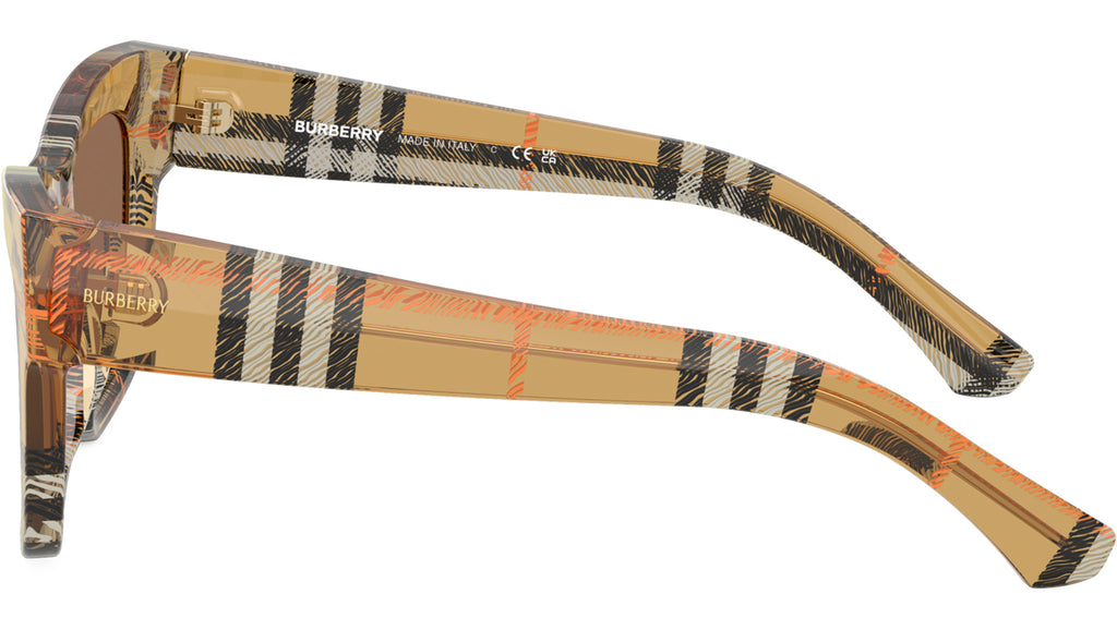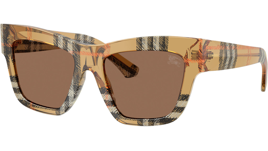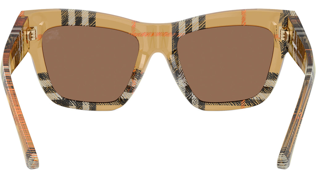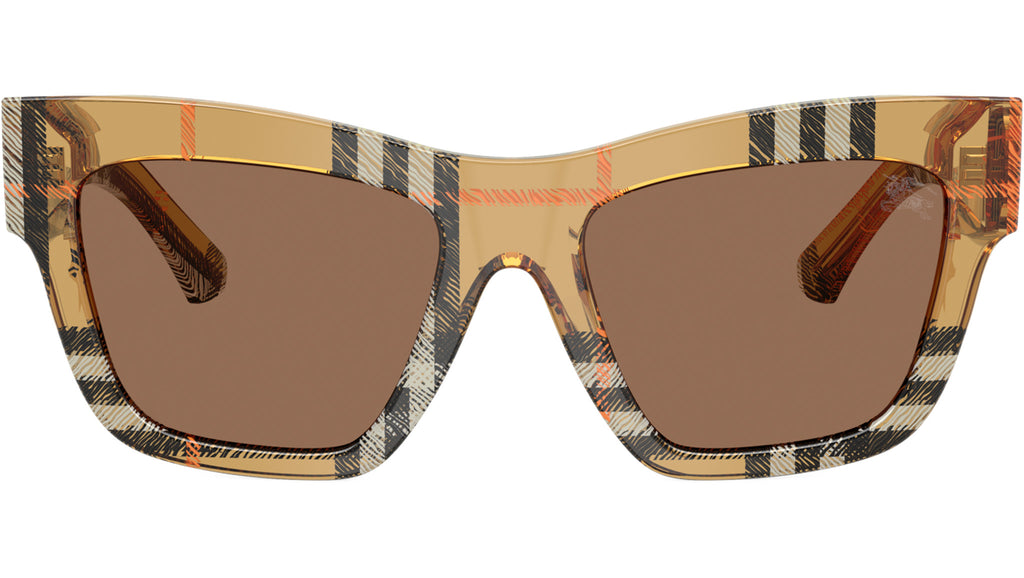 Occhiali da sole Burberry donna modello BE4449 414673 con montatura full rim in acetato sabbia a scacchi e lenti in bio poliammide marrone scuro. Vestibilità a ponte alto. Fitting consigliato: M. Linea: Shield Facet. Codice modello: 0BE4449. Codice colore: 414673. Rivenditore autorizzato online Burberry. Gli occhiali includono la custodia e gli accessori originali e sono coperti da una garanzia globale di 12 mesi.