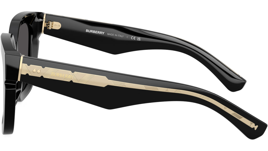 Occhiali da sole Burberry donna modello BE4453 300187 con montatura full rim in acetato nero e lenti in bio poliammide grigio scuro. Vestibilità a ponte alto. Fitting consigliato: XL. Linea: Engraved Check. Codice modello: 0BE4453. Codice colore: 300187. Rivenditore autorizzato online Burberry. Gli occhiali includono la custodia e gli accessori originali e sono coperti da una garanzia globale di 12 mesi.