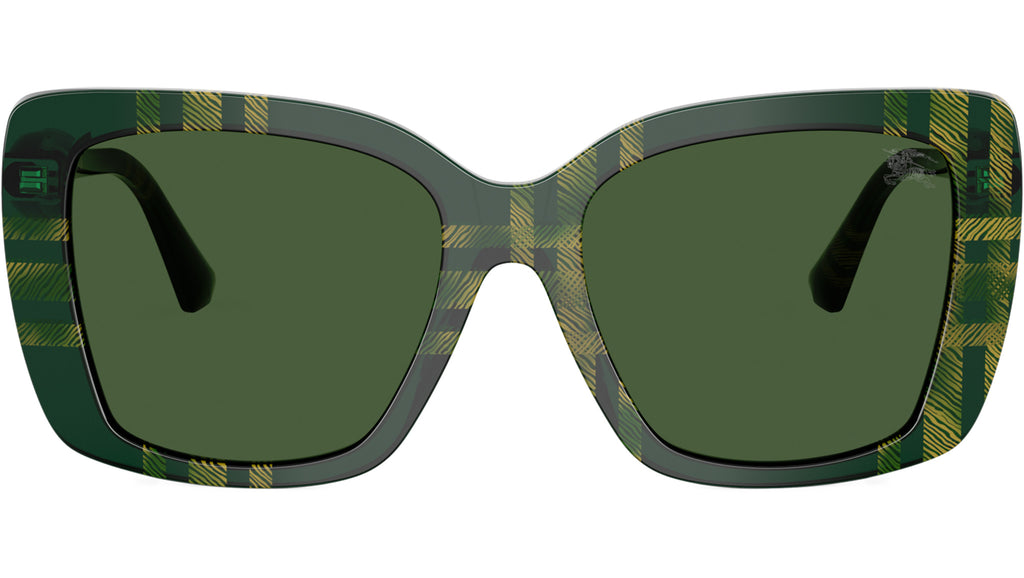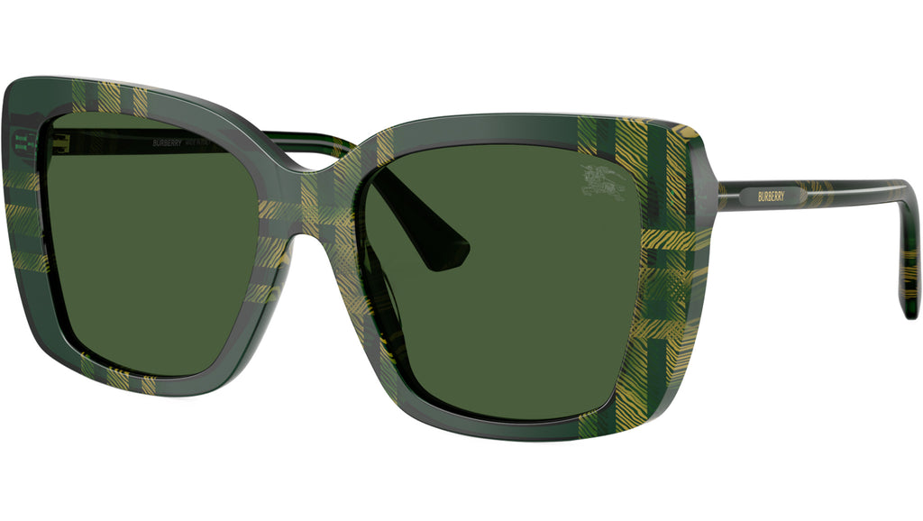 Occhiali da sole Burberry donna modello BE4456 416971 con montatura full rim in acetato motivo a quadri verde e lenti in bio poliammide verde scuro. Vestibilità a ponte alto. Fitting consigliato: M. Linea: Tubular Check. Codice modello: 0BE4456. Codice colore: 416971. Rivenditore autorizzato online Burberry. Gli occhiali includono la custodia e gli accessori originali e sono coperti da una garanzia globale di 12 mesi.
