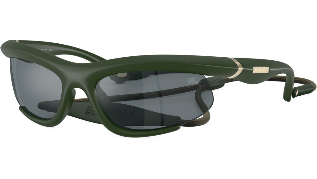 Occhiali da sole Burberry donna modello BE4462 41556G con montatura full rim in iniettato verde effetto gommato e lenti in bio poliammide grigio nero specchiato. Vestibilità a ponte alto. Fitting consigliato: M. Linea: Spring Lookbook. Codice modello: 0BE4462. Codice colore: 41556G. Rivenditore autorizzato online Burberry. Gli occhiali includono la custodia e gli accessori originali e sono coperti da una garanzia globale di 12 mesi.