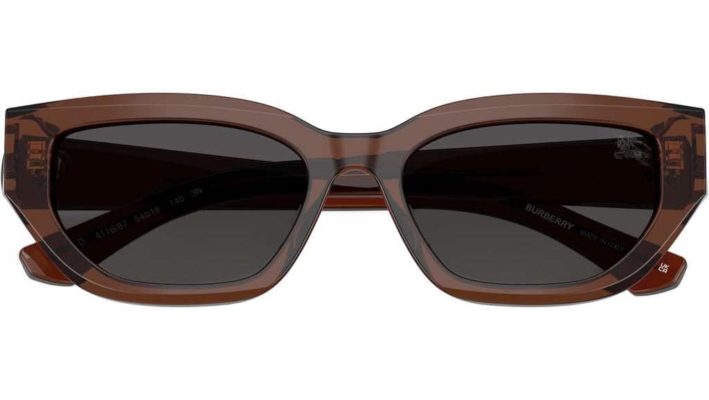 Occhiali da sole Burberry donna modello BE4463D 411687 con montatura full rim in acetato marrone e lenti in bio poliammide grigio scuro. Vestibilità a ponte basso. Fitting consigliato: M. Linea: Shield Facet. Codice modello: 0BE4463D. Codice colore: 411687. Rivenditore autorizzato online Burberry. Gli occhiali includono la custodia e gli accessori originali e sono coperti da una garanzia globale di 12 mesi.