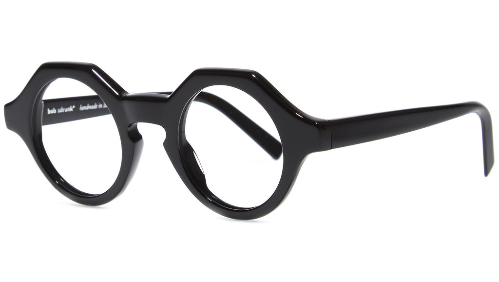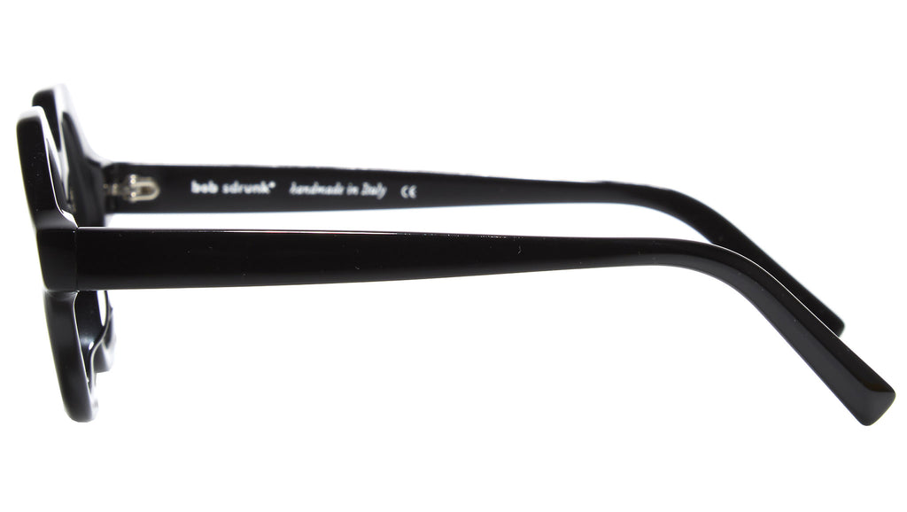 Il modello Bob Sdrunk da vista Alfred 01 con montatura in nero e lenti demo antiriflesso. La meticolosa ricerca del design, delle forme, dei materiali e la cura di ogni singolo dettaglio, da vita a occhiali di alta qualità, originali e non convenzionali. Bob Sdrunk si propone di creare qualcosa che non è mai esistito; qualcosa che trova la sua vera sua identità nel futuro, ma trae origine da ispirazioni che provengono dal passato.
