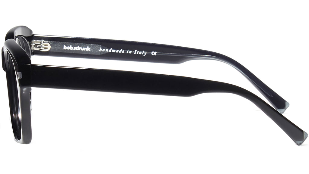 Montatura da vista Bobsdrunk Biff codice colore 01 in tonalità nero. Prodotti senza tempo e forme audaci convivono in questa originale collezione Eyewear. Le linee sono disegnate con maestria, per creare un effetto di audace leggerezza. Ogni paio di occhiali Bobsdrunk è caratterizzato da un dettaglio emblematico, mostrato sulla parte anteriore e sulla punta delle aste, che evidenzia il valore del marchio. Rappresenta in un iconico simbolo l'unione della lettera iniziale e finale di Bobsdrunk. La scelta accurata dei materiali, la selezione dell'artigianalità e una costante ricerca cromatica sono le prerogative di ogni creazione di Bobsdrunk.
