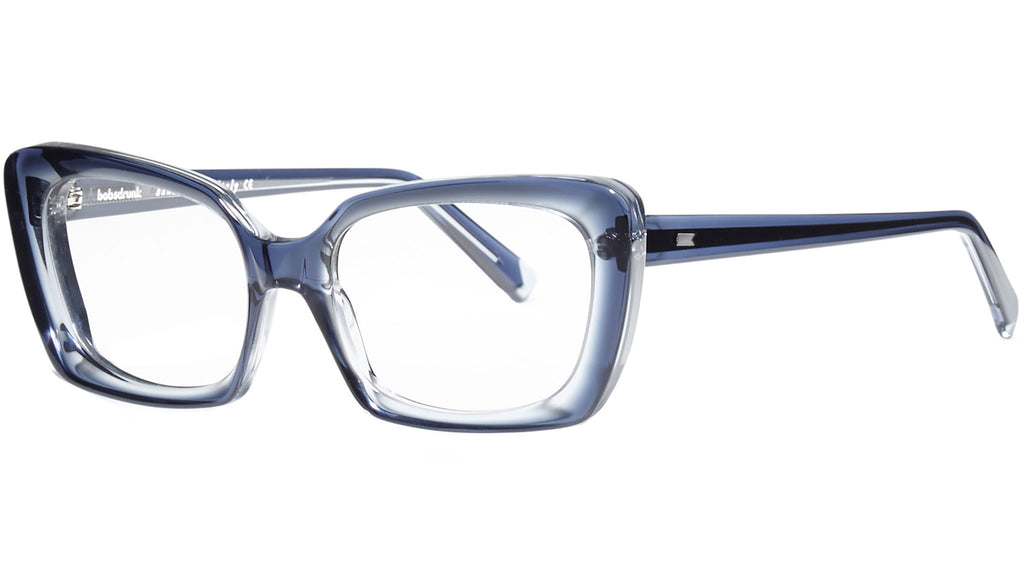 Montatura da vista Bobsdrunk Carlotta codice colore 113 in tonalità blu trasparente / blu trasparente chiaro. Prodotti senza tempo e forme audaci convivono in questa originale collezione Eyewear. Le linee sono disegnate con maestria, per creare un effetto di audace leggerezza. Ogni paio di occhiali Bobsdrunk è caratterizzato da un dettaglio emblematico, mostrato sulla parte anteriore e sulla punta delle aste, che evidenzia il valore del marchio. Rappresenta in un iconico simbolo l'unione della lettera iniziale e finale di Bobsdrunk. La scelta accurata dei materiali, la selezione dell'artigianalità e una costante ricerca cromatica sono le prerogative di ogni creazione di Bobsdrunk.