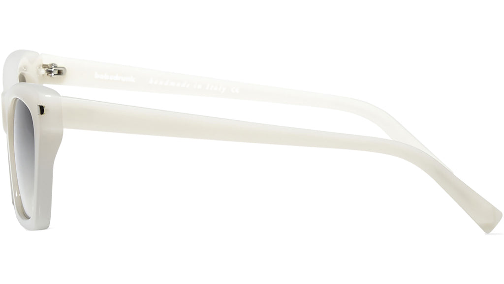 Occhiali da sole Bobsdrunk Cassandra/S codice colore 741 in bianco cigno lattiginoso con lenti grigio sfumato. Cura e attenzione ai dettagli, un elevato standard nella qualità dei materiali e artigianalità 100% made in Italy sono facilmente riconoscibili in ogni prodotto Bobsdrunk. Ogni modello è una perfetta combinazione tra estetica e funzionalità, dal momento della concezione ideale delle forme, fino alla realizzazione finale. Attraverso la scelta attenta dei colori, viene messo in evidenza il valore di ogni dettaglio, per ottenere montature eleganti e senza tempo.