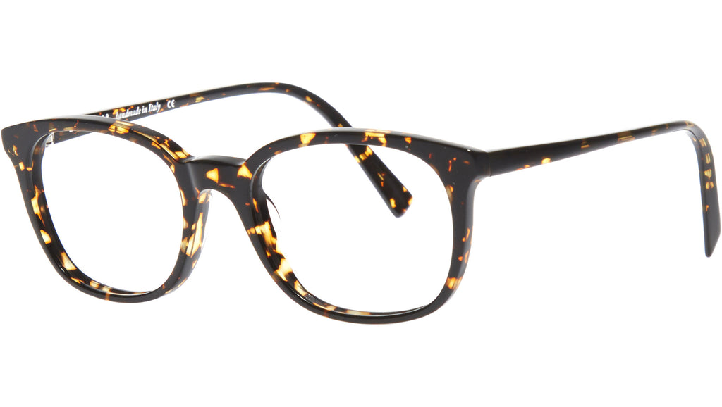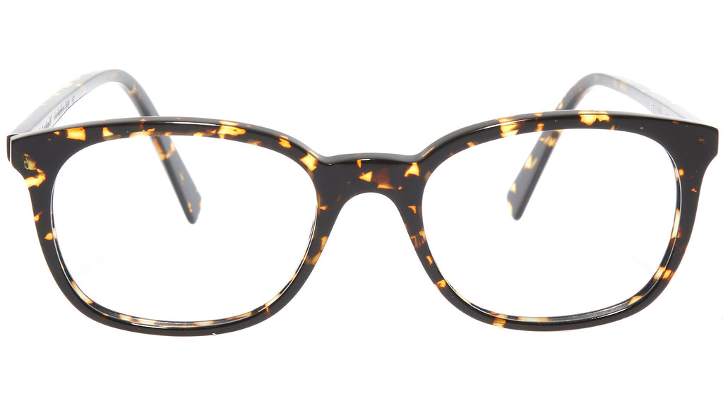 Acetate frame in tortoise. lenses with anti-glare filters.