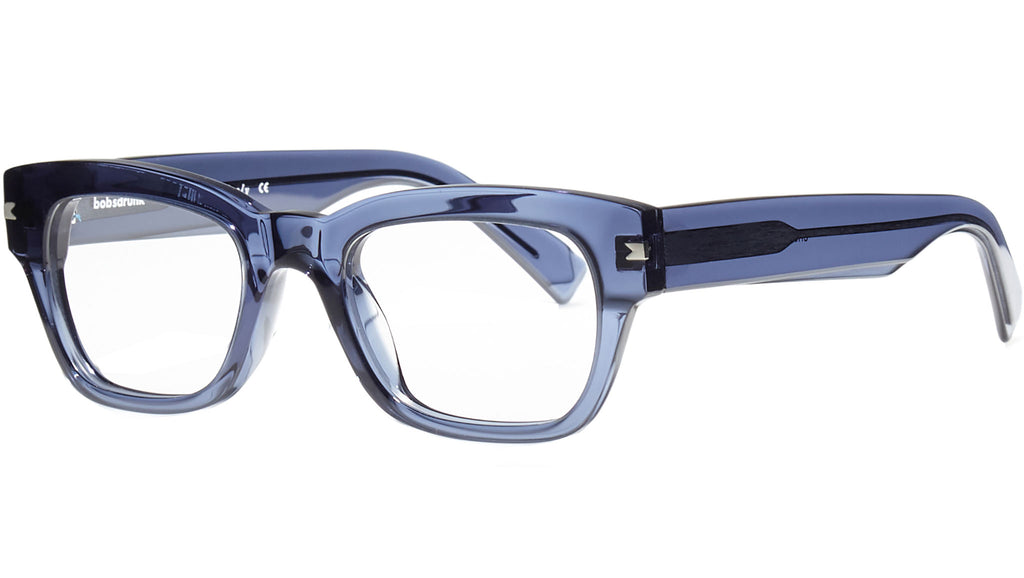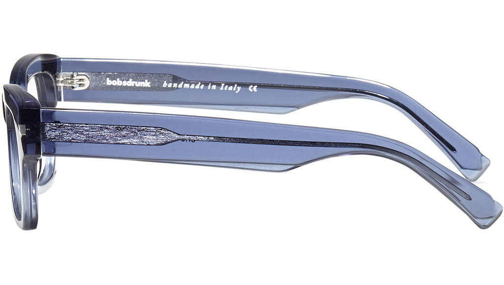 Montatura da vista Bobsdrunk Eric codice colore 130 in tonalità blu trasparente. Prodotti senza tempo e forme audaci convivono in questa originale collezione Eyewear. Le linee sono disegnate con maestria, per creare un effetto di audace leggerezza. Ogni paio di occhiali Bobsdrunk è caratterizzato da un dettaglio emblematico, mostrato sulla parte anteriore e sulla punta delle aste, che evidenzia il valore del marchio. Rappresenta in un iconico simbolo l'unione della lettera iniziale e finale di Bobsdrunk. La scelta accurata dei materiali, la selezione dell'artigianalità e una costante ricerca cromatica sono le prerogative di ogni creazione di Bobsdrunk.