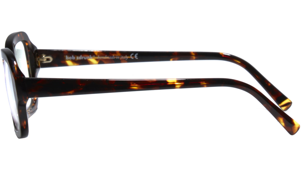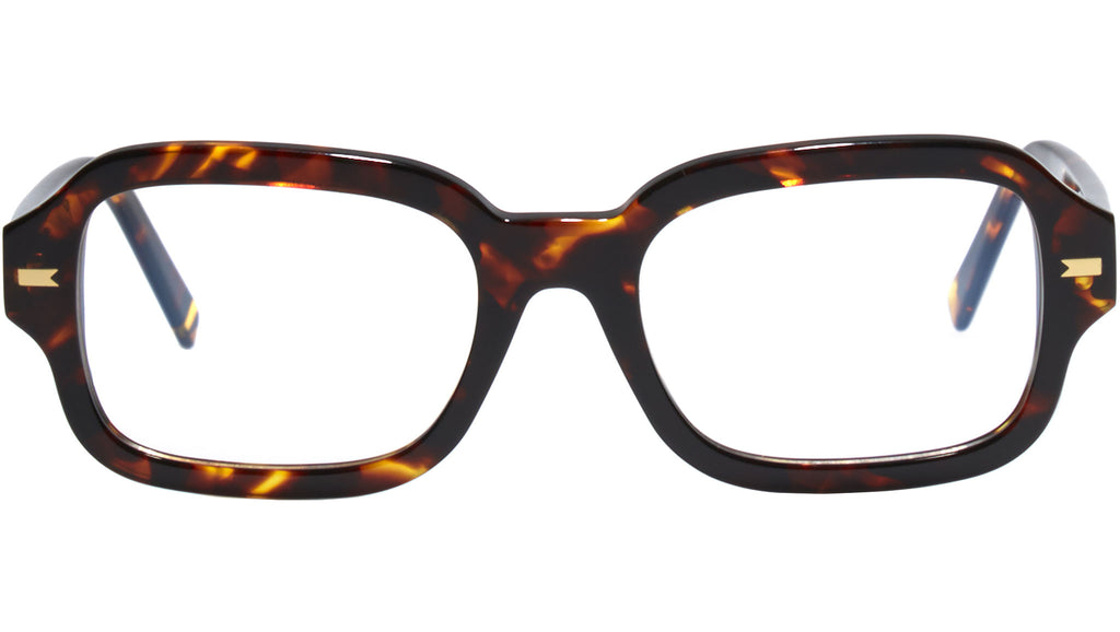 Acetate frame in tortoise. lenses with anti-glare filters.