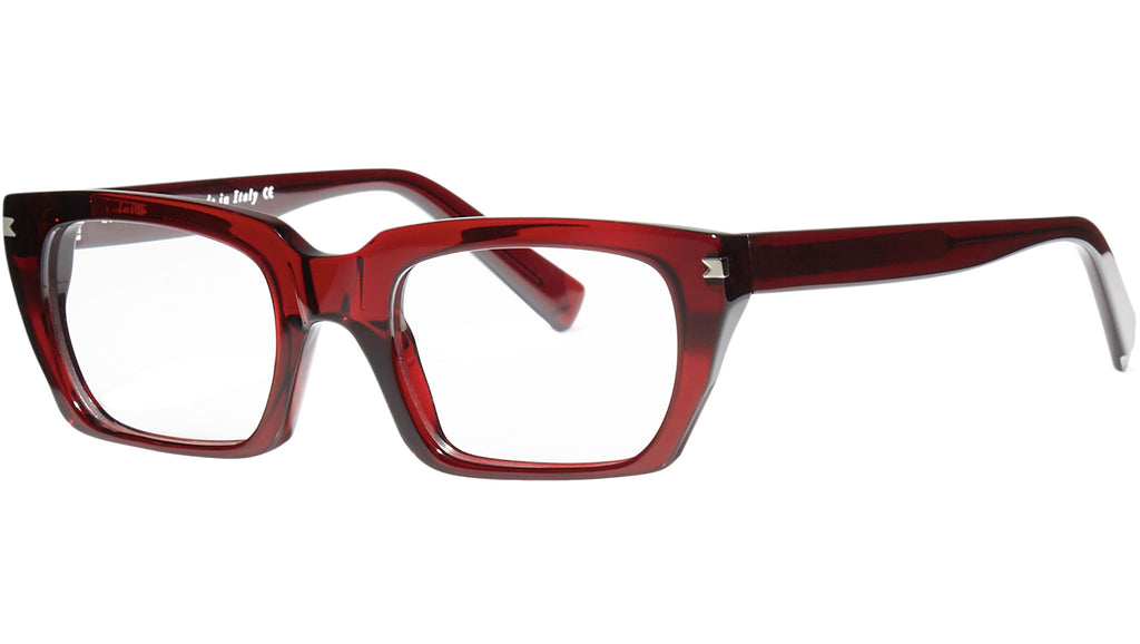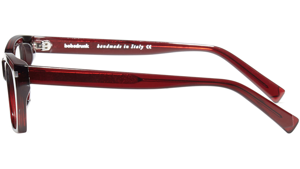 Montatura da vista Bobsdrunk Iris codice colore 14 in tonalità bordeaux trasparente. Prodotti senza tempo e forme audaci convivono in questa originale collezione Eyewear. Le linee sono disegnate con maestria, per creare un effetto di audace leggerezza. Ogni paio di occhiali Bobsdrunk è caratterizzato da un dettaglio emblematico, mostrato sulla parte anteriore e sulla punta delle aste, che evidenzia il valore del marchio. Rappresenta in un iconico simbolo l'unione della lettera iniziale e finale di Bobsdrunk. La scelta accurata dei materiali, la selezione dell'artigianalità e una costante ricerca cromatica sono le prerogative di ogni creazione di Bobsdrunk.