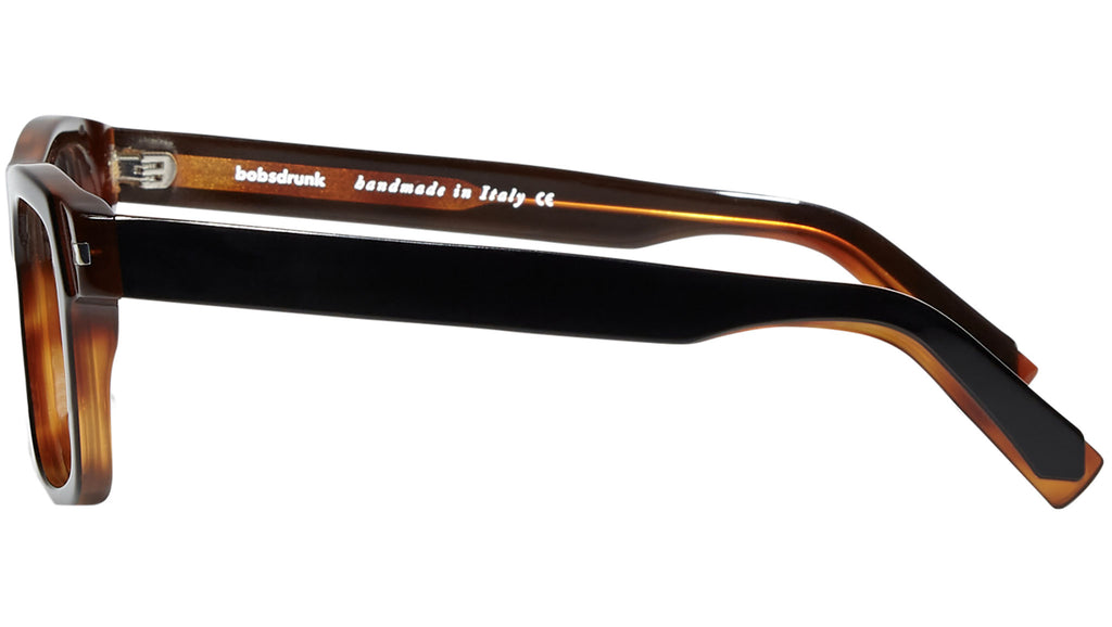 Montatura da vista Bobsdrunk Ivan codice colore 104 in tonalità nero / tartaruga. Prodotti senza tempo e forme audaci convivono in questa originale collezione Eyewear. Le linee sono disegnate con maestria, per creare un effetto di audace leggerezza. Ogni paio di occhiali Bobsdrunk è caratterizzato da un dettaglio emblematico, mostrato sulla parte anteriore e sulla punta delle aste, che evidenzia il valore del marchio. Rappresenta in un iconico simbolo l'unione della lettera iniziale e finale di Bobsdrunk. La scelta accurata dei materiali, la selezione dell'artigianalità e una costante ricerca cromatica sono le prerogative di ogni creazione di Bobsdrunk.