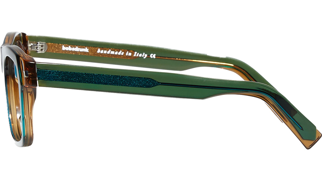 Montatura da vista Bobsdrunk Ivan codice colore 159 in tonalità verde trasparente / arancione. Prodotti senza tempo e forme audaci convivono in questa originale collezione Eyewear. Le linee sono disegnate con maestria, per creare un effetto di audace leggerezza. Ogni paio di occhiali Bobsdrunk è caratterizzato da un dettaglio emblematico, mostrato sulla parte anteriore e sulla punta delle aste, che evidenzia il valore del marchio. Rappresenta in un iconico simbolo l'unione della lettera iniziale e finale di Bobsdrunk. La scelta accurata dei materiali, la selezione dell'artigianalità e una costante ricerca cromatica sono le prerogative di ogni creazione di Bobsdrunk.