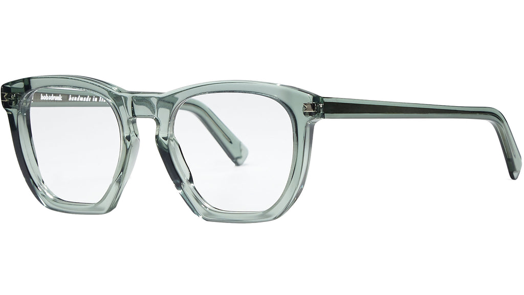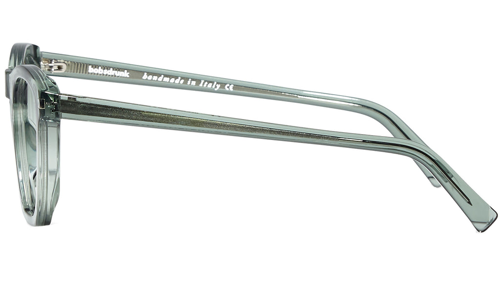 Montatura da vista Bobsdrunk Jake codice colore 152 in tonalità verde foglia trasparente. Prodotti senza tempo e forme audaci convivono in questa originale collezione Eyewear. Le linee sono disegnate con maestria, per creare un effetto di audace leggerezza. Ogni paio di occhiali Bobsdrunk è caratterizzato da un dettaglio emblematico, mostrato sulla parte anteriore e sulla punta delle aste, che evidenzia il valore del marchio. Rappresenta in un iconico simbolo l'unione della lettera iniziale e finale di Bobsdrunk. La scelta accurata dei materiali, la selezione dell'artigianalità e una costante ricerca cromatica sono le prerogative di ogni creazione di Bobsdrunk.