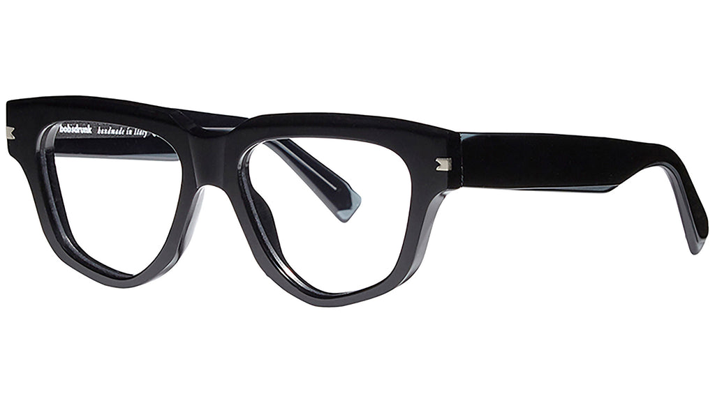 Montatura da vista Bobsdrunk Link codice colore 01 in tonalità nero. Prodotti senza tempo e forme audaci convivono in questa nuova collezione Eyewear 2023. Le linee sono disegnate con maestria, per creare un effetto di audace leggerezza. Ogni paio di occhiali Bobsdrunk è caratterizzato da un dettaglio emblematico, mostrato sulla parte anteriore e sulla punta delle aste, che evidenzia il valore del marchio. Rappresenta in un iconico simbolo l'unione della lettera iniziale e finale di Bobsdrunk. La scelta accurata dei materiali, la selezione dell'artigianalità e una costante ricerca cromatica sono le prerogative di ogni creazione di Bobsdrunk.