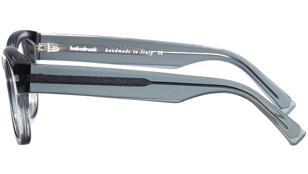 Montatura da vista Bobsdrunk Luigi codice colore 19 in tonalità grigio trasparente. Prodotti senza tempo e forme audaci convivono in questa originale collezione Eyewear. Le linee sono disegnate con maestria, per creare un effetto di audace leggerezza. Ogni paio di occhiali Bobsdrunk è caratterizzato da un dettaglio emblematico, mostrato sulla parte anteriore e sulla punta delle aste, che evidenzia il valore del marchio. Rappresenta in un iconico simbolo l'unione della lettera iniziale e finale di Bobsdrunk. La scelta accurata dei materiali, la selezione dell'artigianalità e una costante ricerca cromatica sono le prerogative di ogni creazione di Bobsdrunk.