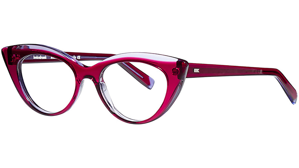 Montatura da vista Bobsdrunk Magda codice colore 251 in tonalità sfumato rosso / viola. Prodotti senza tempo e forme audaci convivono in questa nuova collezione Eyewear 2023. Le linee sono disegnate con maestria, per creare un effetto di audace leggerezza. Ogni paio di occhiali Bobsdrunk è caratterizzato da un dettaglio emblematico, mostrato sulla parte anteriore e sulla punta delle aste, che evidenzia il valore del marchio. Rappresenta in un iconico simbolo l'unione della lettera iniziale e finale di Bobsdrunk. La scelta accurata dei materiali, la selezione dell'artigianalità e una costante ricerca cromatica sono le prerogative di ogni creazione di Bobsdrunk.
