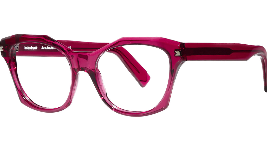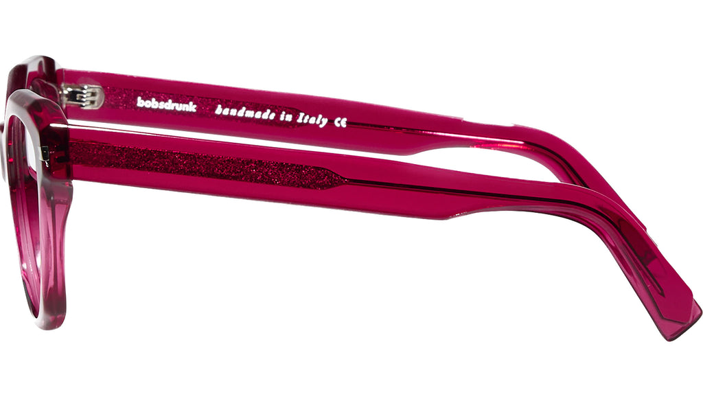 Montatura da vista Bobsdrunk Nina codice colore 144 in tonalità ciclamino trasparente. Prodotti senza tempo e forme audaci convivono in questa originale collezione Eyewear. Le linee sono disegnate con maestria, per creare un effetto di audace leggerezza. Ogni paio di occhiali Bobsdrunk è caratterizzato da un dettaglio emblematico, mostrato sulla parte anteriore e sulla punta delle aste, che evidenzia il valore del marchio. Rappresenta in un iconico simbolo l'unione della lettera iniziale e finale di Bobsdrunk. La scelta accurata dei materiali, la selezione dell'artigianalità e una costante ricerca cromatica sono le prerogative di ogni creazione di Bobsdrunk.