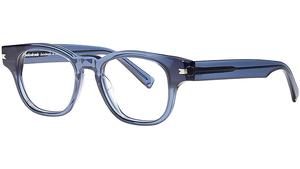 Montatura da vista Bobsdrunk Willy codice colore 13 in tonalità blu federale trasparente. Prodotti senza tempo e forme audaci convivono in questa originale collezione Eyewear. Le linee sono disegnate con maestria, per creare un effetto di audace leggerezza. Ogni paio di occhiali Bobsdrunk è caratterizzato da un dettaglio emblematico, mostrato sulla parte anteriore e sulla punta delle aste, che evidenzia il valore del marchio. Rappresenta in un iconico simbolo l'unione della lettera iniziale e finale di Bobsdrunk. La scelta accurata dei materiali, la selezione dell'artigianalità e una costante ricerca cromatica sono le prerogative di ogni creazione di Bobsdrunk.