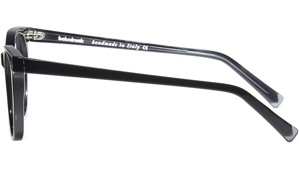 Montatura da vista Bobsdrunk Wilson codice colore 01 in tonalità nero. Prodotti senza tempo e forme audaci convivono in questa originale collezione Eyewear. Le linee sono disegnate con maestria, per creare un effetto di audace leggerezza. Ogni paio di occhiali Bobsdrunk è caratterizzato da un dettaglio emblematico, mostrato sulla parte anteriore e sulla punta delle aste, che evidenzia il valore del marchio. Rappresenta in un iconico simbolo l'unione della lettera iniziale e finale di Bobsdrunk. La scelta accurata dei materiali, la selezione dell'artigianalità e una costante ricerca cromatica sono le prerogative di ogni creazione di Bobsdrunk.