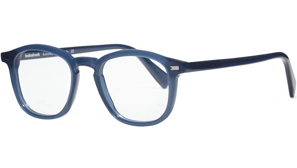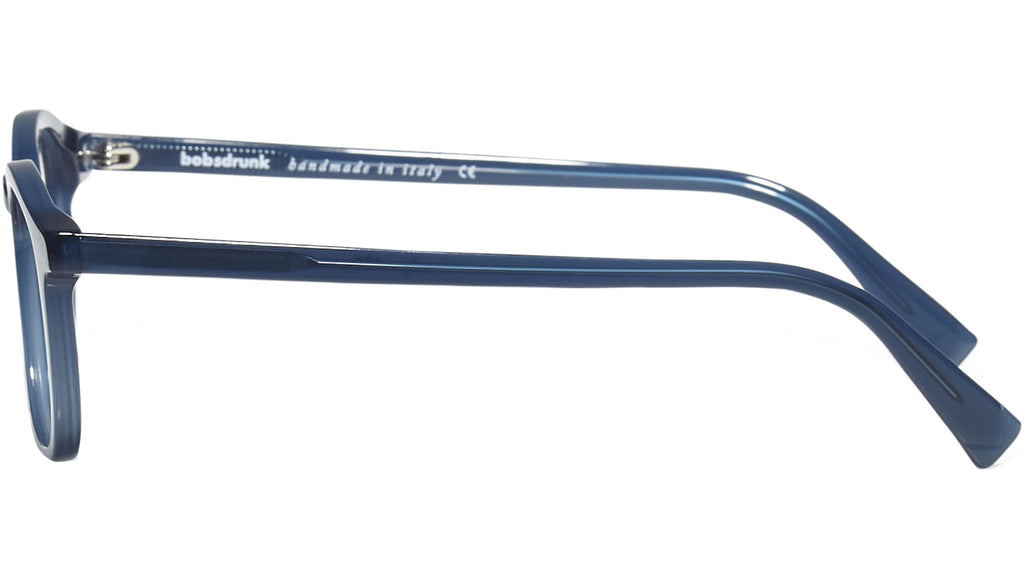 Montatura da vista Bobsdrunk Woody codice colore 133 in tonalità blu inchiostro lattiginoso. Prodotti senza tempo e forme audaci convivono in questa originale collezione Eyewear. Le linee sono disegnate con maestria, per creare un effetto di audace leggerezza. Ogni paio di occhiali Bobsdrunk è caratterizzato da un dettaglio emblematico, mostrato sulla parte anteriore e sulla punta delle aste, che evidenzia il valore del marchio. Rappresenta in un iconico simbolo l'unione della lettera iniziale e finale di Bobsdrunk. La scelta accurata dei materiali, la selezione dell'artigianalità e una costante ricerca cromatica sono le prerogative di ogni creazione di Bobsdrunk.