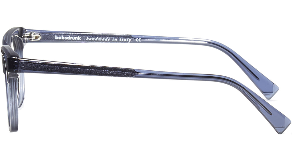 Montatura da vista Bobsdrunk Zach codice colore 130/S in tonalità blu trasparente opaco. Prodotti senza tempo e forme audaci convivono in questa originale collezione Eyewear. Le linee sono disegnate con maestria, per creare un effetto di audace leggerezza. Ogni paio di occhiali Bobsdrunk è caratterizzato da un dettaglio emblematico, mostrato sulla parte anteriore e sulla punta delle aste, che evidenzia il valore del marchio. Rappresenta in un iconico simbolo l'unione della lettera iniziale e finale di Bobsdrunk. La scelta accurata dei materiali, la selezione dell'artigianalità e una costante ricerca cromatica sono le prerogative di ogni creazione di Bobsdrunk.