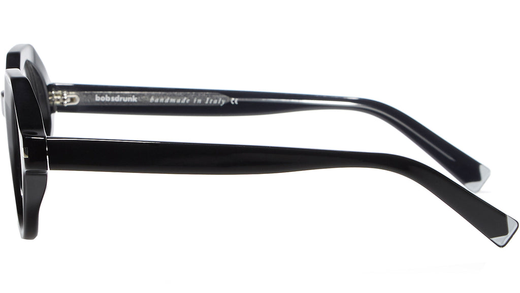 Montatura da vista Bobsdrunk Alfie codice colore 01 in tonalità nero. Prodotti senza tempo e forme audaci convivono in questa originale collezione Eyewear. Le linee sono disegnate con maestria, per creare un effetto di audace leggerezza. Ogni paio di occhiali Bobsdrunk è caratterizzato da un dettaglio emblematico, mostrato sulla parte anteriore e sulla punta delle aste, che evidenzia il valore del marchio. Rappresenta in un iconico simbolo l'unione della lettera iniziale e finale di Bobsdrunk. La scelta accurata dei materiali, la selezione dell'artigianalità e una costante ricerca cromatica sono le prerogative di ogni creazione di Bobsdrunk.