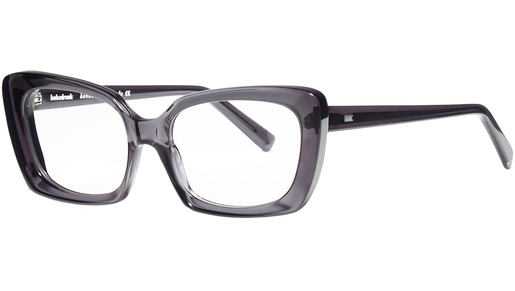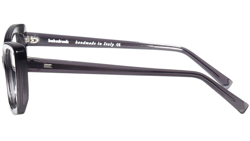 Montatura da vista Bobsdrunk Carlotta codice colore 201 in tonalità nero trasparente. Prodotti senza tempo e forme audaci convivono in questa originale collezione Eyewear. Le linee sono disegnate con maestria, per creare un effetto di audace leggerezza. Ogni paio di occhiali Bobsdrunk è caratterizzato da un dettaglio emblematico, mostrato sulla parte anteriore e sulla punta delle aste, che evidenzia il valore del marchio. Rappresenta in un iconico simbolo l'unione della lettera iniziale e finale di Bobsdrunk. La scelta accurata dei materiali, la selezione dell'artigianalità e una costante ricerca cromatica sono le prerogative di ogni creazione di Bobsdrunk.