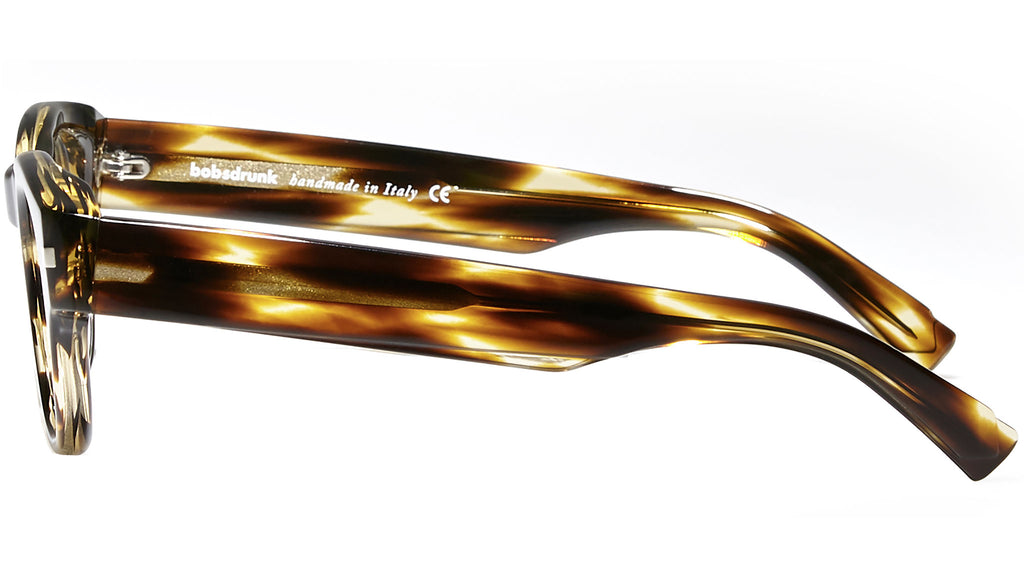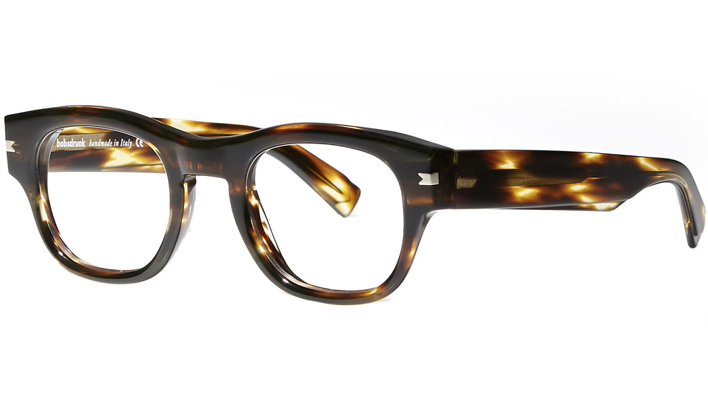 Montatura da vista Bobsdrunk Luigi codice colore 03 in tonalità tartaruga. Prodotti senza tempo e forme audaci convivono in questa originale collezione Eyewear. Le linee sono disegnate con maestria, per creare un effetto di audace leggerezza. Ogni paio di occhiali Bobsdrunk è caratterizzato da un dettaglio emblematico, mostrato sulla parte anteriore e sulla punta delle aste, che evidenzia il valore del marchio. Rappresenta in un iconico simbolo l'unione della lettera iniziale e finale di Bobsdrunk. La scelta accurata dei materiali, la selezione dell'artigianalità e una costante ricerca cromatica sono le prerogative di ogni creazione di Bobsdrunk.