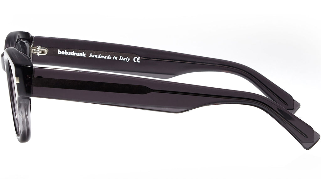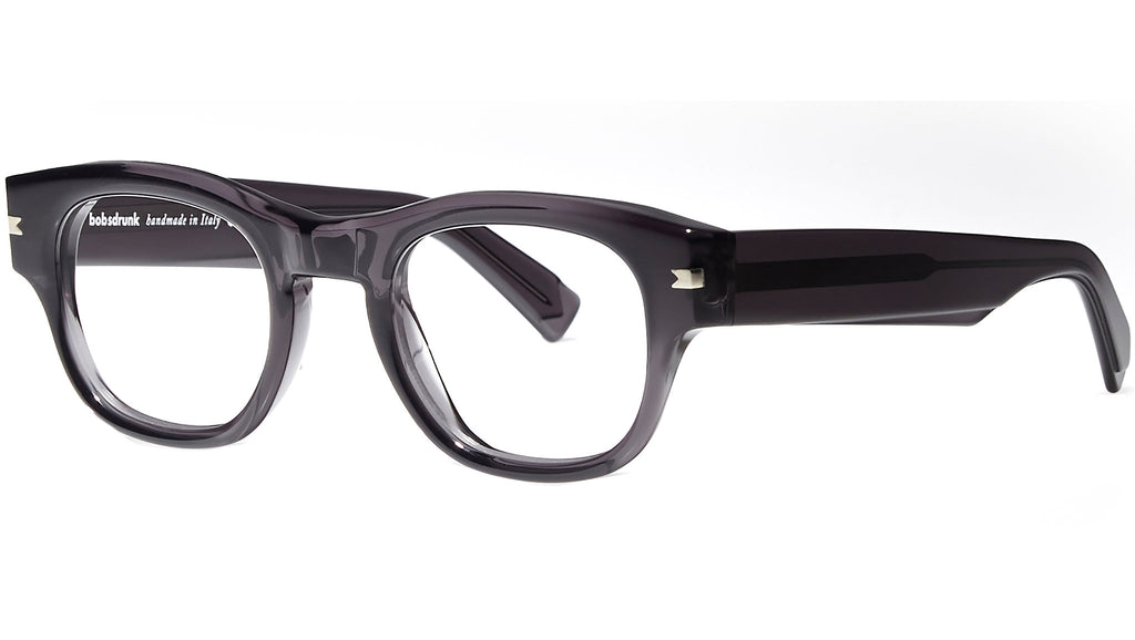 Montatura da vista Bobsdrunk Luigi codice colore 201 in tonalità nero crystal. Prodotti senza tempo e forme audaci convivono in questa originale collezione Eyewear. Le linee sono disegnate con maestria, per creare un effetto di audace leggerezza. Ogni paio di occhiali Bobsdrunk è caratterizzato da un dettaglio emblematico, mostrato sulla parte anteriore e sulla punta delle aste, che evidenzia il valore del marchio. Rappresenta in un iconico simbolo l'unione della lettera iniziale e finale di Bobsdrunk. La scelta accurata dei materiali, la selezione dell'artigianalità e una costante ricerca cromatica sono le prerogative di ogni creazione di Bobsdrunk.
