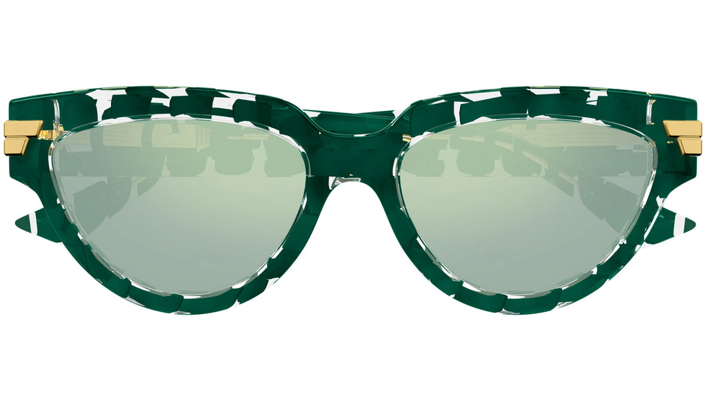 Occhiali da sole Bottega Veneta modello BV1035S linea Unapologetic in acetato forma a gatto codice colore 008 verde solido lucido + intreccio trasparente con lenti color salvia solido + frontale verde AR + flash elettrico. Rivenditore autorizzato Bottega Veneta online. Gli occhiali vengono consegnati con custodia e accessori originali e sono coperti dalla garanzia ufficiale di 12 mesi del produttore.