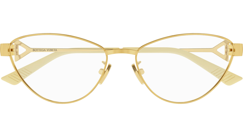 Occhiali da vista Bottega Veneta linea New Classic modello BV1188O variante colore 002 oro lucido con astine color oro.