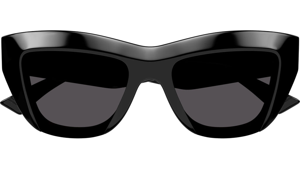 Occhiali da sole Bottega Veneta linea New Classic modello BV1218S variante colore 001 nero lucido tinta unita con lenti color grigio tinta unita.