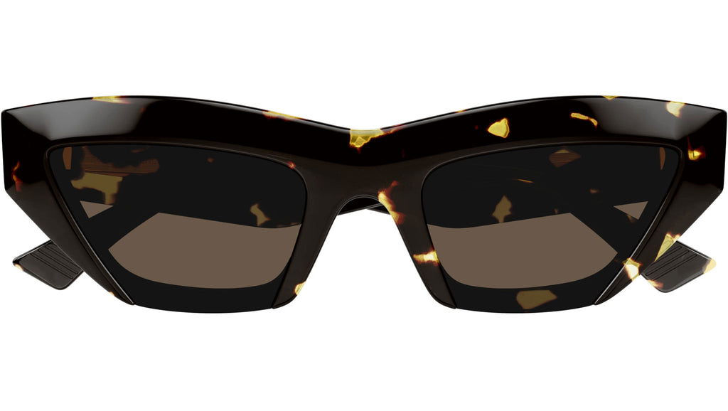 Occhiali da sole Bottega Veneta linea New Classic modello BV1219S variante colore 002 avana maculato lucido con lenti color marrone tinta unita.