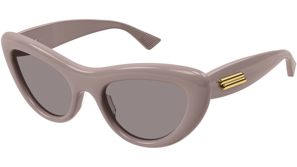Occhiali da sole Bottega Veneta modello BV1282S linea New Classic codice colore 004 lilla dust solido lucido in acetato riciclato forma cat eye con lenti color viola grigio solido.