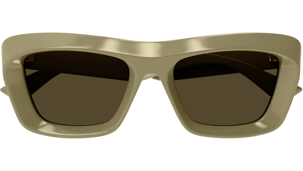 Occhiali da sole Bottega Veneta modello BV1283S linea New Classic codice colore 003 beige talpa solido lucido in acetato riciclato forma rectangle con lenti color marrone tinta unita.