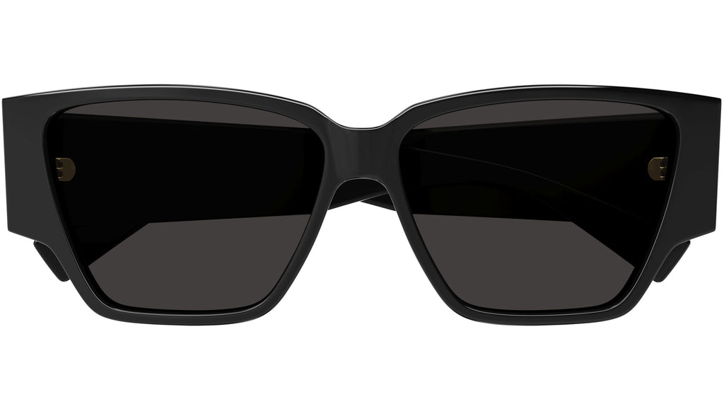 Occhiali da sole Bottega Veneta modello BV1285S linea New Classic codice colore 001 nero lucido tinta unita in acetato riciclato forma rectangle con lenti color grigio tinta unita.