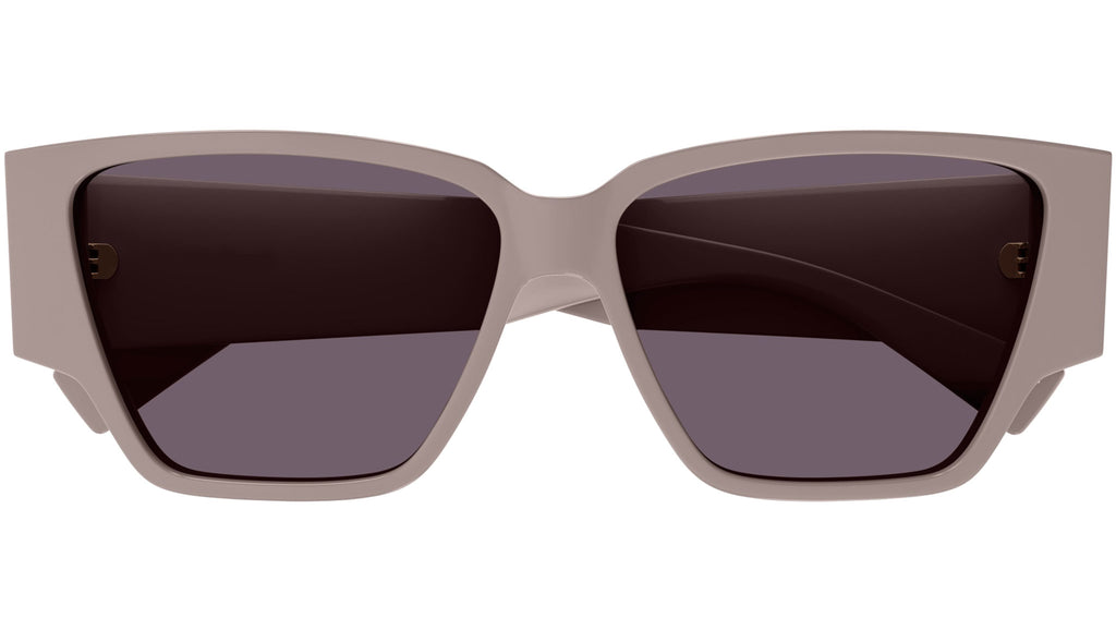 Occhiali da sole Bottega Veneta modello BV1285S linea New Classic codice colore 004 lilla dust solido lucido in acetato riciclato forma rectangle con lenti color solid burgundy brown.