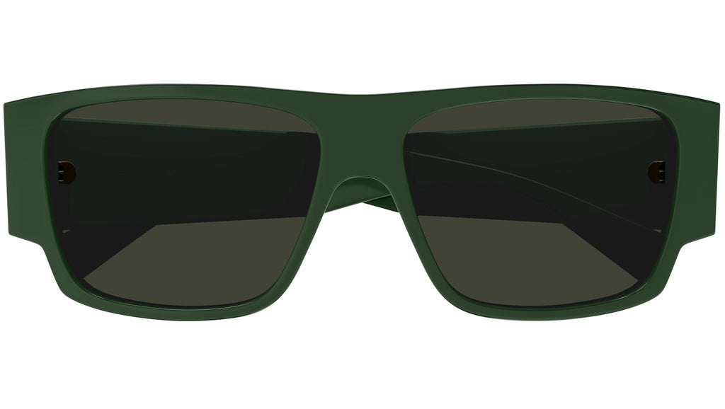 Occhiali da sole Bottega Veneta modello BV1286S linea New Classic codice colore 003 verde scuro tinta unita lucido in acetato riciclato forma rectangle con lenti color verde scuro tinta unita.
