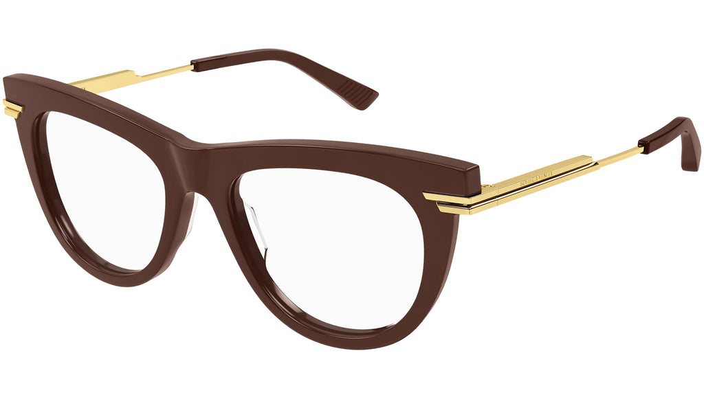 Occhiali da vista Bottega Veneta modello BV1297O linea Minimalist codice colore 003 bordeaux barolo lucido in acetato riciclato forma rectangle con aste color oro.