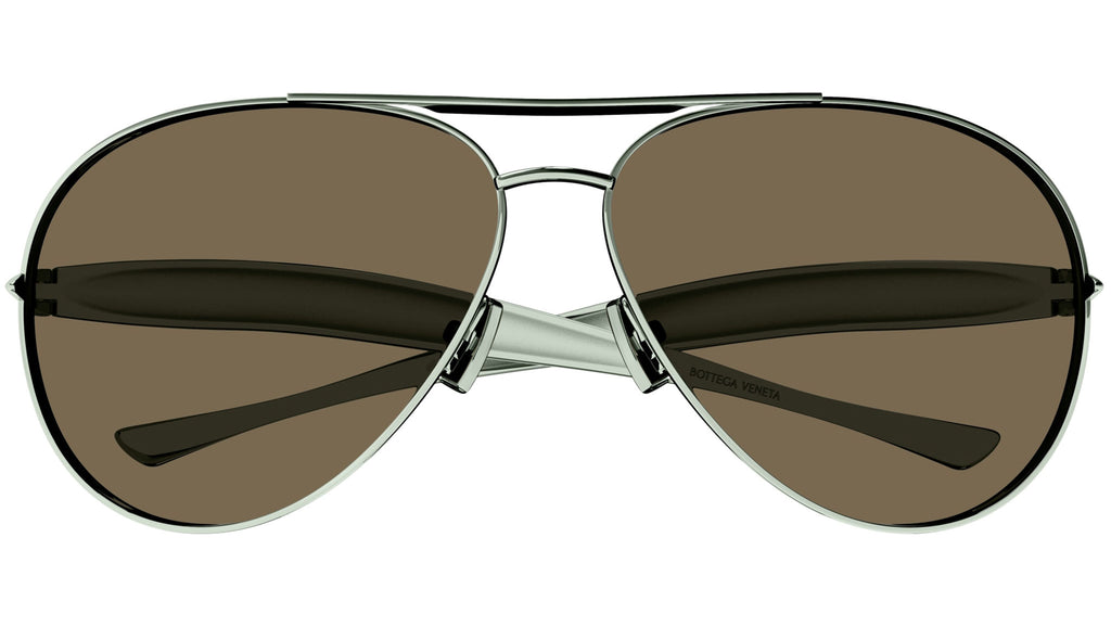 Occhiali da sole Bottega Veneta modello BV1305S linea Unapologetic codice colore 006 verde salvia trasparente lucido in metallo forma aviator con lenti color solid khaki brown.