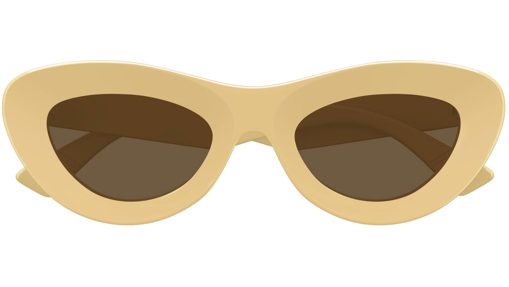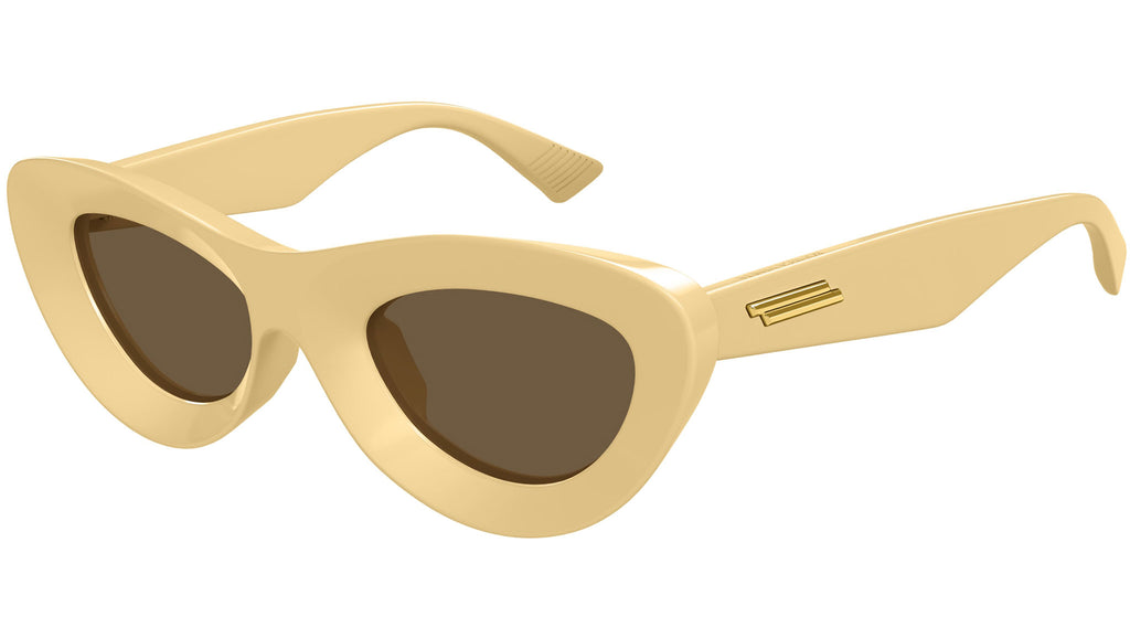 Occhiali da sole Bottega Veneta modello BV1325S in iniettato forma a gatto codice colore 002 giallo paglierino solido lucido con lenti color marrone tinta unita. Rivenditore autorizzato Bottega Veneta online. Gli occhiali vengono consegnati con custodia e accessori originali e sono coperti dalla garanzia ufficiale di 12 mesi del produttore.