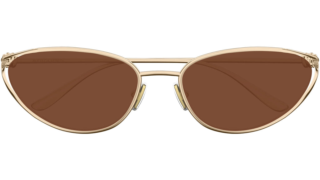 Occhiali da sole Bottega Veneta modello BV1330S in metallo forma a gatto codice colore 003 oro rosa lucido con lenti color marrone caldo tinta unita. Rivenditore autorizzato Bottega Veneta online. Gli occhiali vengono consegnati con custodia e accessori originali e sono coperti dalla garanzia ufficiale di 12 mesi del produttore.