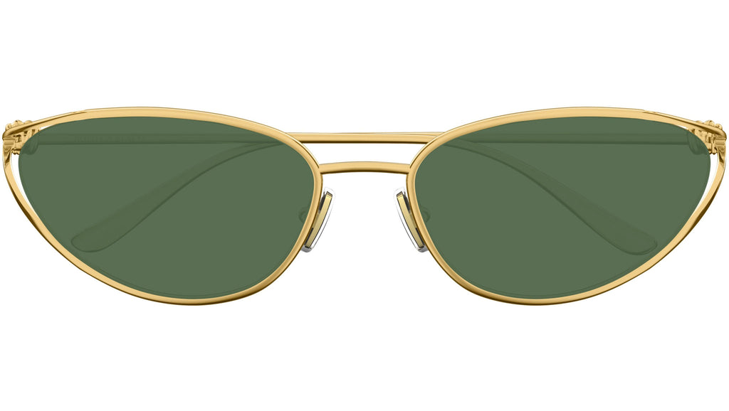 Occhiali da sole Bottega Veneta modello BV1330S in metallo forma a gatto codice colore 004 oro lucido con lenti color verde tinta unita. Rivenditore autorizzato Bottega Veneta online. Gli occhiali vengono consegnati con custodia e accessori originali e sono coperti dalla garanzia ufficiale di 12 mesi del produttore.