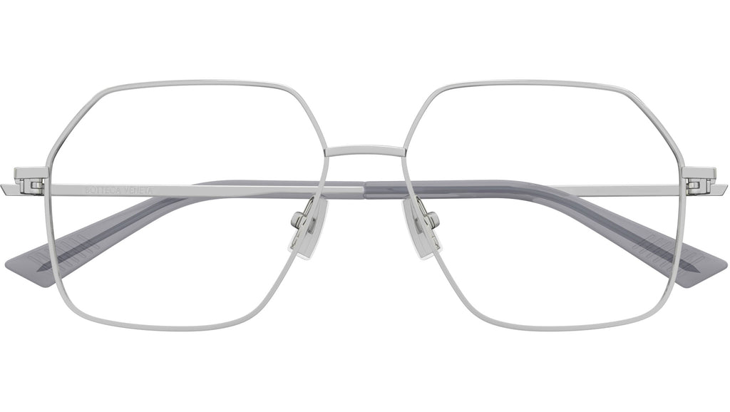 Occhiali da vista Bottega Veneta modello BV1332O in metallo forma rettangolare codice colore 005 argento lucido con lenti demo. Rivenditore autorizzato Bottega Veneta online. Gli occhiali vengono consegnati con custodia e accessori originali e sono coperti dalla garanzia ufficiale di 12 mesi del produttore.